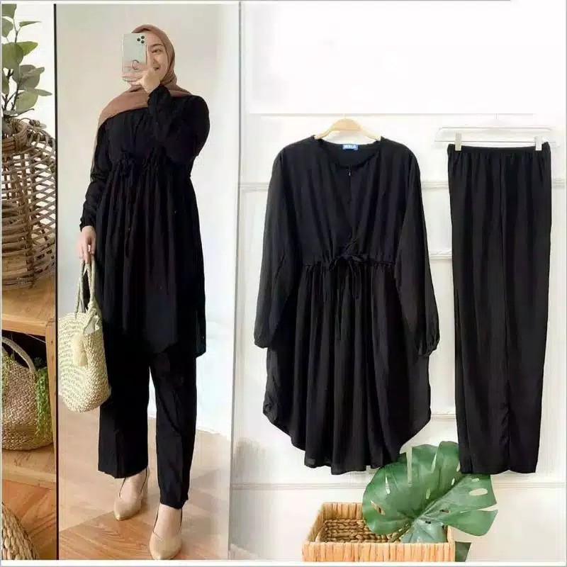 Setelan Baju Tunik Wanita Kekinian Muslim Jumbo One Set Bahan