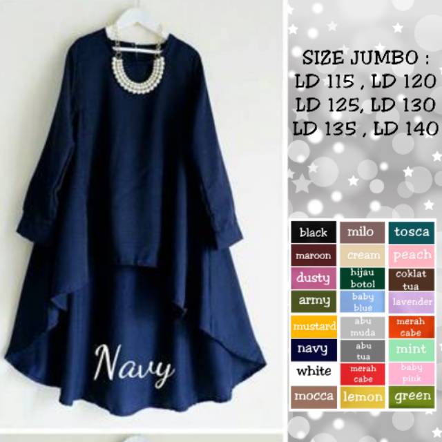 Baju Atasan Ld 115120125130135140 Luna Busana Muslim Jumbo Tunik